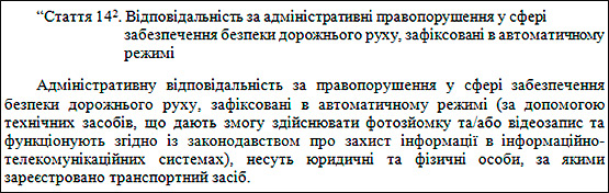 Крім цього, цим же законопроектом, Арсеній Яценюк пропонує знову повернути в силу ст.14-1, що дозволяє штрафувати власника транспортного засобу. “Адміністративну відповідальність за правопорушення у сфері забезпечення безпеки дорожнього руху, зафіксовані в автоматичному режимі , несуть юридичні та фізичні особи, за якими зареєстровано транспортний засіб” – йдеться в тексті проекту.