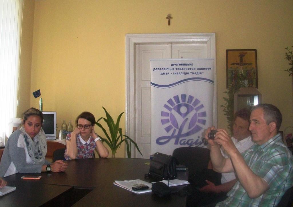 Про відзначення ювілею ДДТЗДІ «Надія», про нові форми роботи, нові проекти та волонтерів розповіла журналістам очільник товариства «Надія» Ірина Дзюрах. Участь в зустрічі взяли також приватний підприємець і друг «Надії» Олег Солод, друзі «Надії» Мар`яна Коркуна та Мар`яна Костів, завідувач кафедри практичної психології Дрогобицького державного педагогічного університету імені Івана Франка (соціально-гуманітарний факультет) Валентина Стець, керівник театру «Альтер» Андрій Юркевич, доброволець з Добровольчого Корпусу Миру в Україні (США) Сара Рамаден.