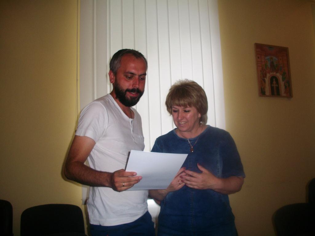 Прес-конференцію в «Надії» завершив виступ волонтерки з Добровольчого Корпусу Миру в Україні Сари Рамаден. Попередня волонтерка, яка працювала в «Надії», не завершила свою місію і від`їхала на батьківщину в 2014 році, коли через воєнні дії американський Корпус Миру відкликав з нашої держави всіх своїх волонтерів. Сара прибула в Україну, щоб допомогти у вирішенні організаційних питань та налагодженні контактів з зарубіжними громадськими організаціями. Дівчина проживає в дрогобицькій сім`ї, вже потроху розуміє українську і навіть говорить нею. Маючи досвід роботи у банківській сфері США, Сара хоче допомогти «Надії» в пошуку ресурсів. Паралельно дівчина долучиться до організації занять з фітнесу та шейпінгу, адже це її хобі. Сара Рамаден – бакалавр міжнародних відносин, закінчила університет за спеціальністю «Європейські студії», родом зі штату Флорида. Волонтерка зі США також відповіла на запитання журналістів.