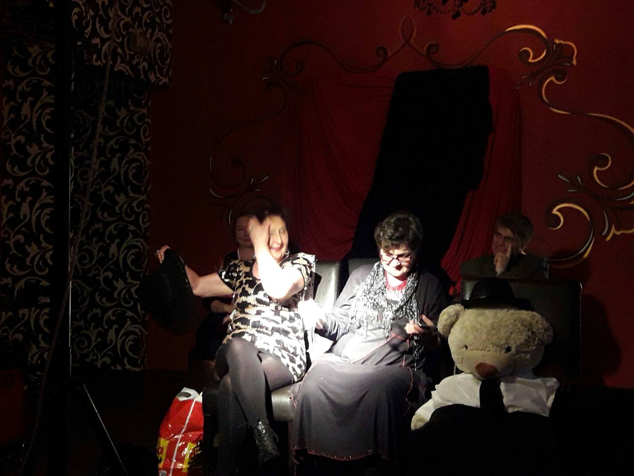 – Przedstawiamy teatr offowy czyli taki który nie zajmuje się typowym teatrem dramatycznym, natomiast bardzo chce wymusić widza do rozważań, do własnej interpretacji, – mówi po ukończeniu spektaklu reżyserka Grażyna Kaznowska. – Nie przeraża mnie nawet gdy ktoś wychodzi w środku spektaklu, jest to bowiem znakiem że nasze dzieło jakoś poruszyło widza, Gorzej jednak gdy widz ziewa, nudzi się i nic w nim nie pozostaje po ukończeniu wystawy…
