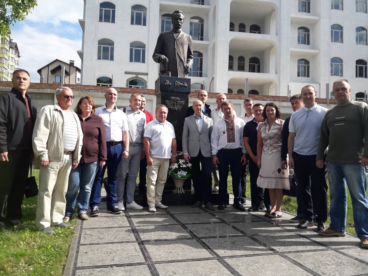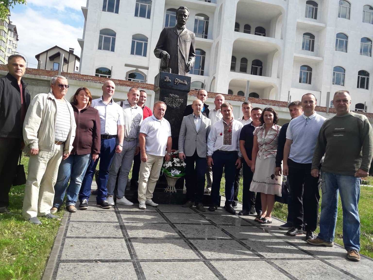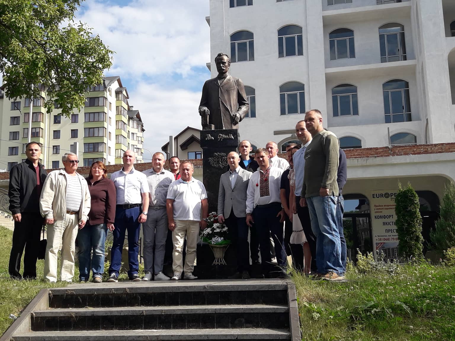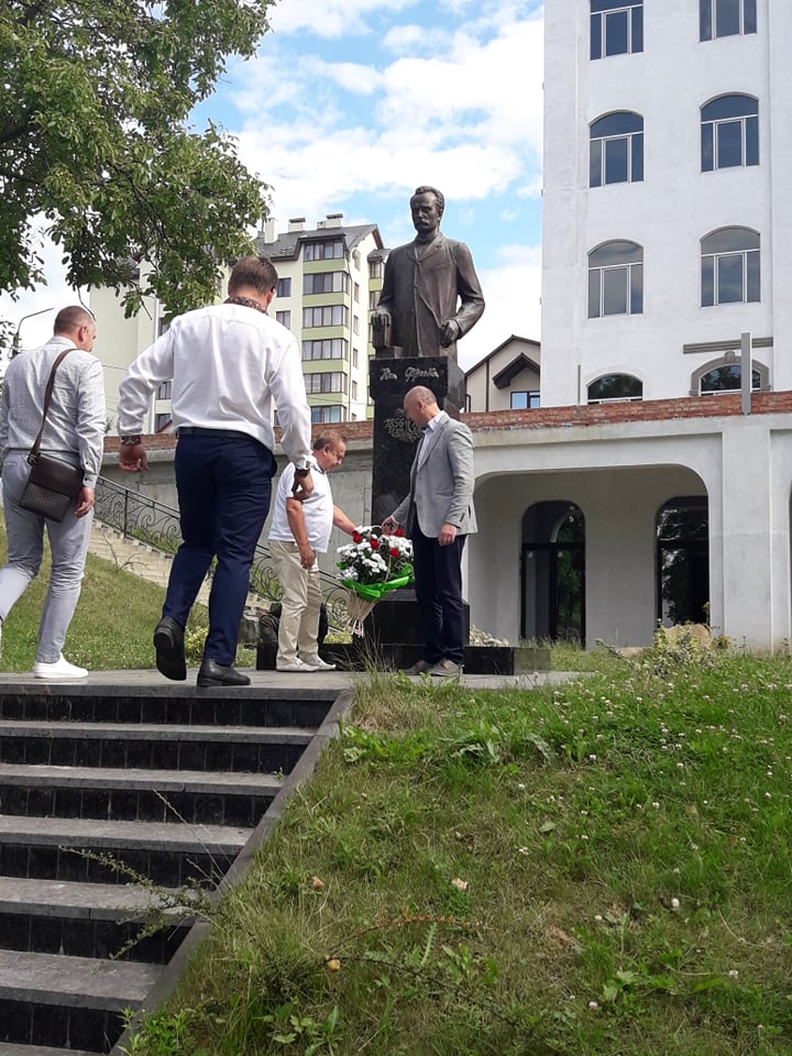 На фото: члени Трускавецької міської організації партії «Батьківщина» покладають квіти до пам’ятника Франка з нагоди 20-ліття партії «Батьківщина».