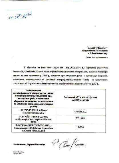 Це при тому, що ця фірма була однією з тих, що підняла «на гора» корупційні оборудки у Департаменті екології Львівщини та в Мінекології загалом. КПЛ вже направляв запит на адресу екологічної інспекції з даними, які фірми найбільше наживалися на постанові КМ 1221 від 17 грудня 2012 року (документ 4).