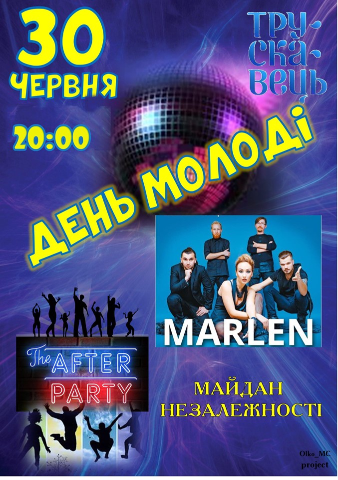 У неділю, 30 червня, з нагоди Дня молоді у Трускавці на площі Незалежності відбудеться концертний виступ гурту «Marlen» та молодіжна дискотека. Початок о 20.00.
