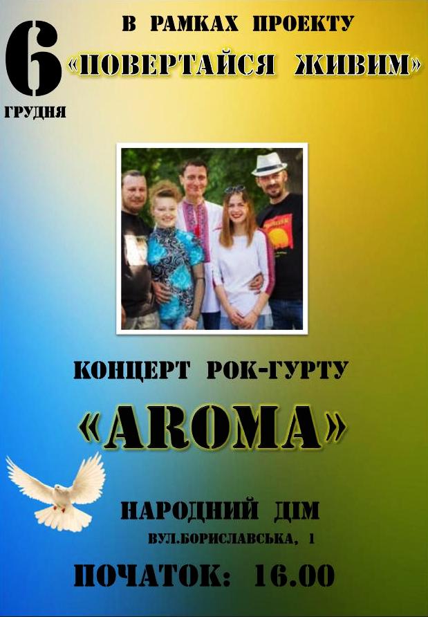 Запрошуємо на концерт рок-гурту “Aroma” в рамках проекту “Повертайся живим”