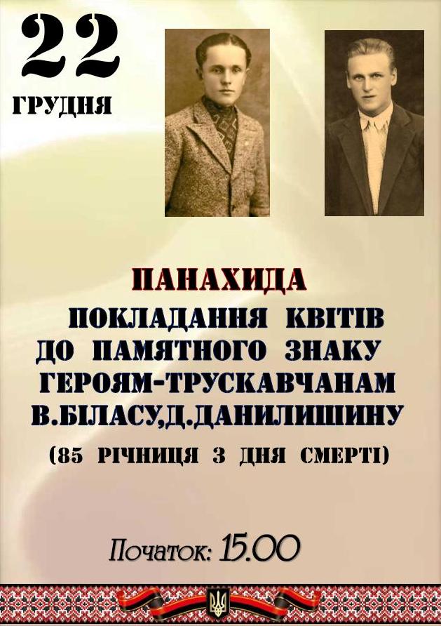 Запрошуємо на вшанування пам`яті Василя Біласа та Дмитра Данилишина