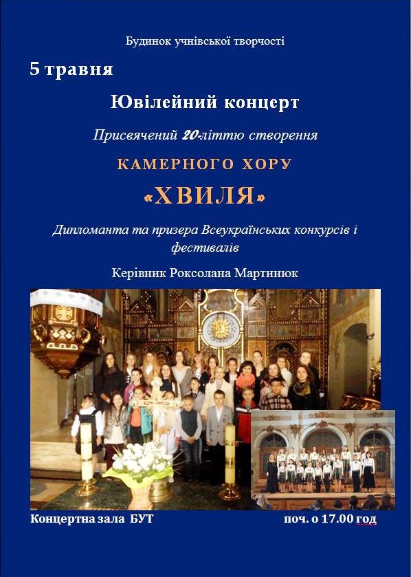 Запрошуємо на ювілейний концерт камерного хору “Хвиля”