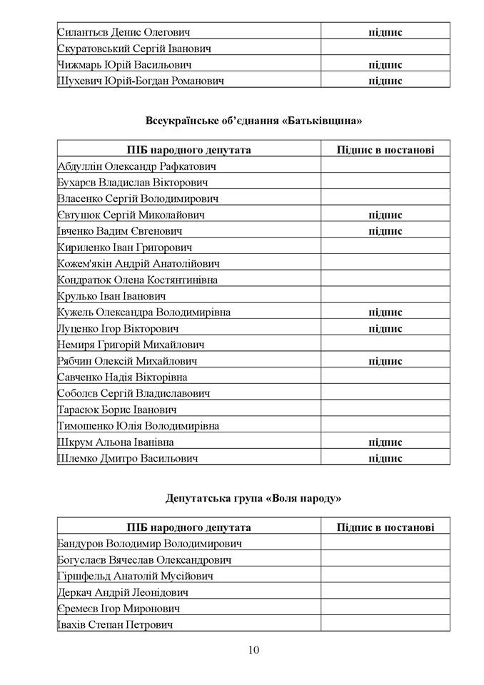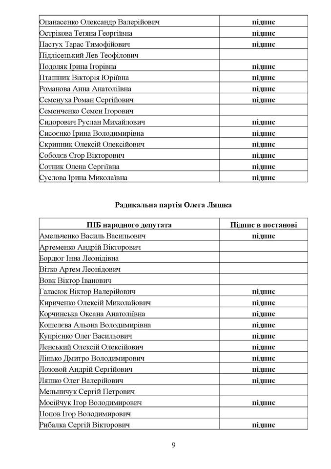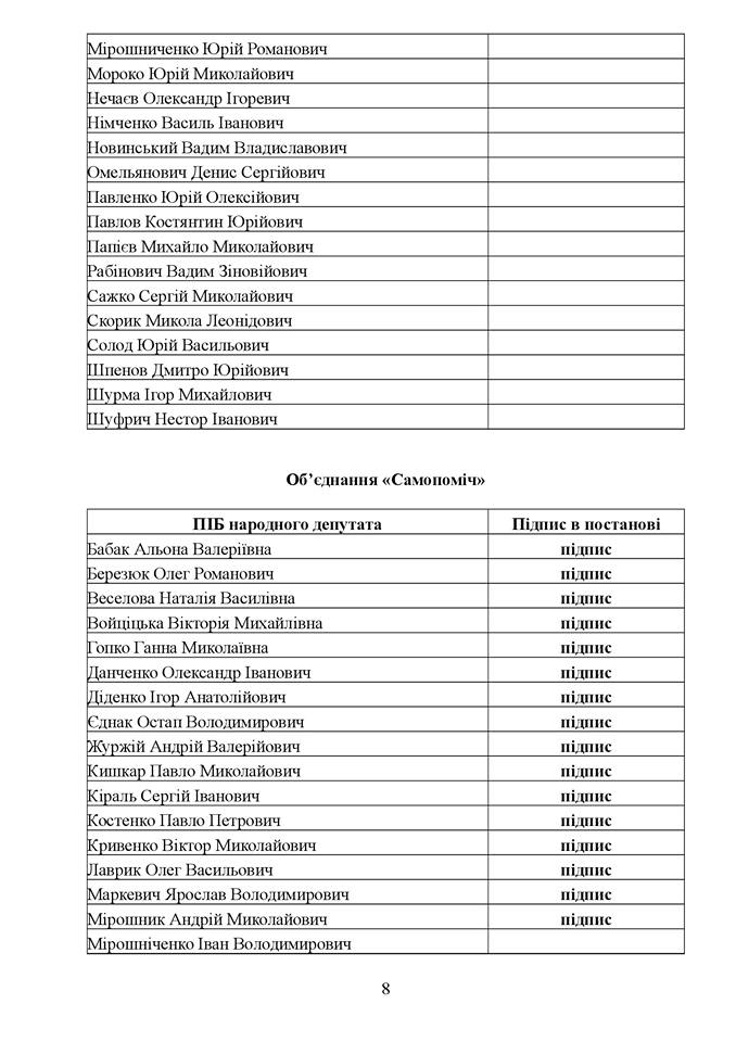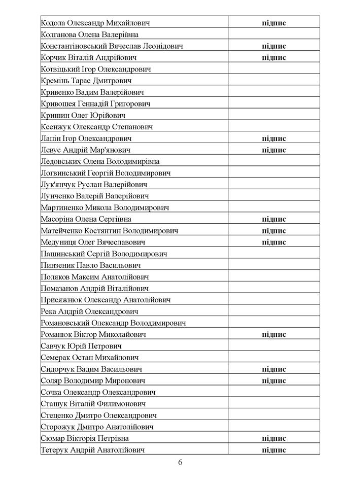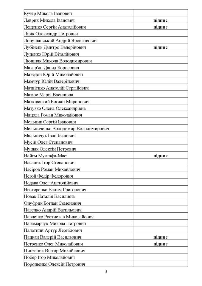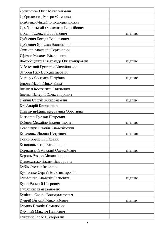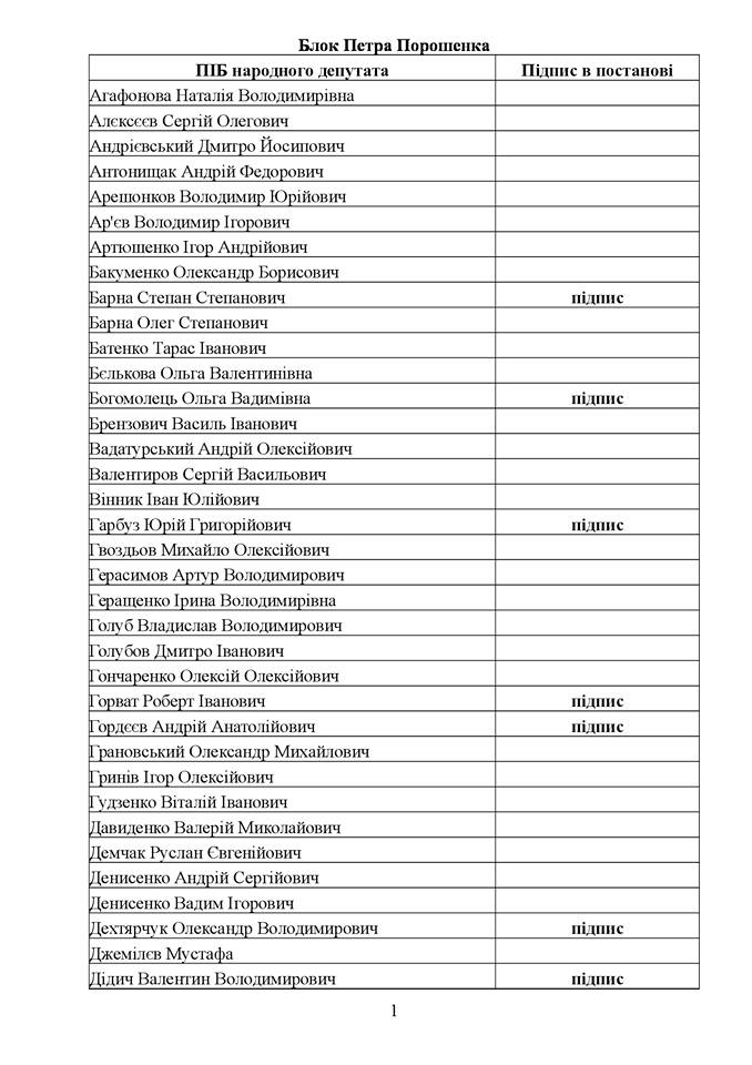 І головне – прізвища усіх парламентарів, які не поставили підпис.