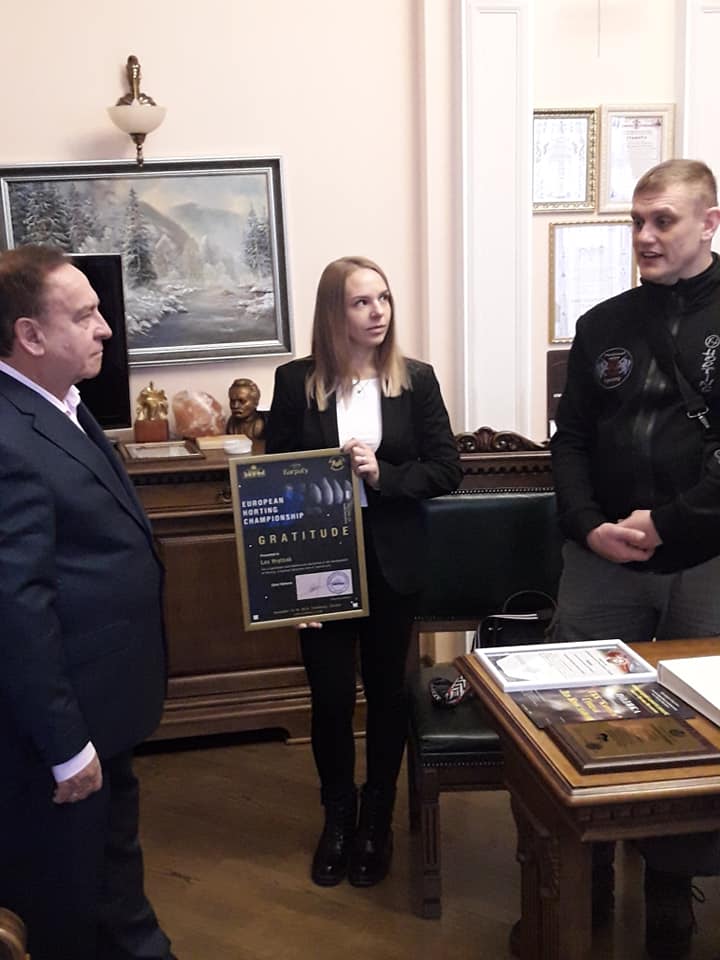Центральні столичні телеканали теж постаралися, аби Чемпіонат Європи з хортингу здобув широкий розголос. Десятки тисяч переглядів відеосюжетів, хоча від моменту завершення ЧЄ не пройшло й тижня – це успіх! Про це говорилося під час зустрічі віце-президента Міжнародної Федерації хортингу України Віталія Плеханова та генерального спонсора Чемпіонату, генерального директора Трускавецького готельно-курортного комплексу «Карпати» Лева Грицака. У зустрічі також взяли участь Президент Львівської обласної федерації хортингу, тренер команди «Галицькі Леви» з Дрогобича Денис Іваницький та гордість хортингу, вихованка «Галицьких Левів», котра візьме участь у Чемпіонаті з національних єдиноборств у Франції в травні 2019 року Віталіна Коссак.