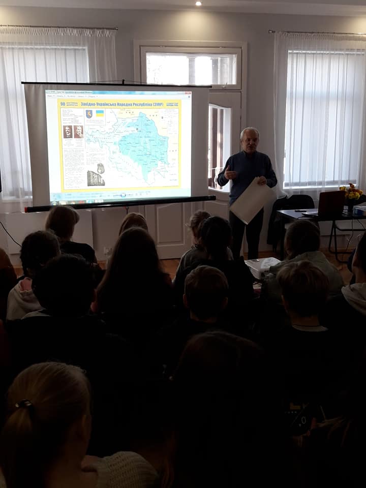 Оскільки зараз відзначаємо 100-літній ювілей Західно-Української Народної Республіки, то тема ЗУНР на зустрічі була основною. Діти, котрі найактивніше відповідали на запитання гостя, мали можливість отримати історичні карти формату 50х70 см, а школи Трускавця отримали по комплекту таких карт.