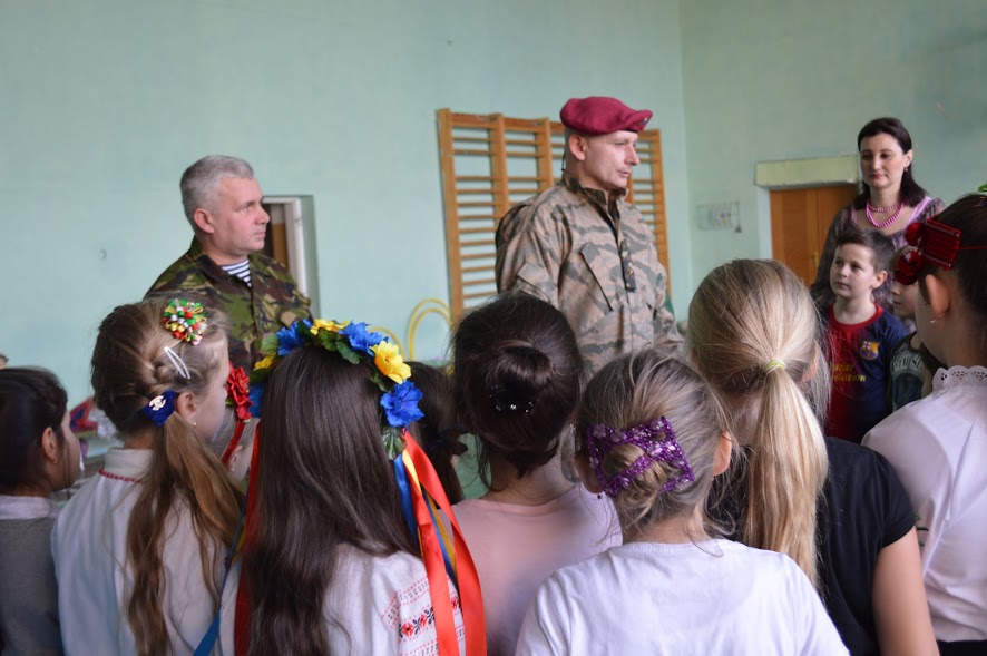 Дітки вручили бійцям власноруч сплетені патріотичні обереги. Згодом бійці, серед яких і помічник командира з правової роботи, Юрій Швець, упродовж години спілкувались з учнями, відповідали на їх запитання.