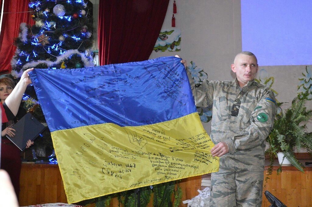 Щоб висловити вдячність, учні школи зібрали 8 тисяч грн. та закупили необхідні речі для українських бійців. А вояки, в свою чергу, передали дітям прапор, на якому розписались усі бійці батальйону».